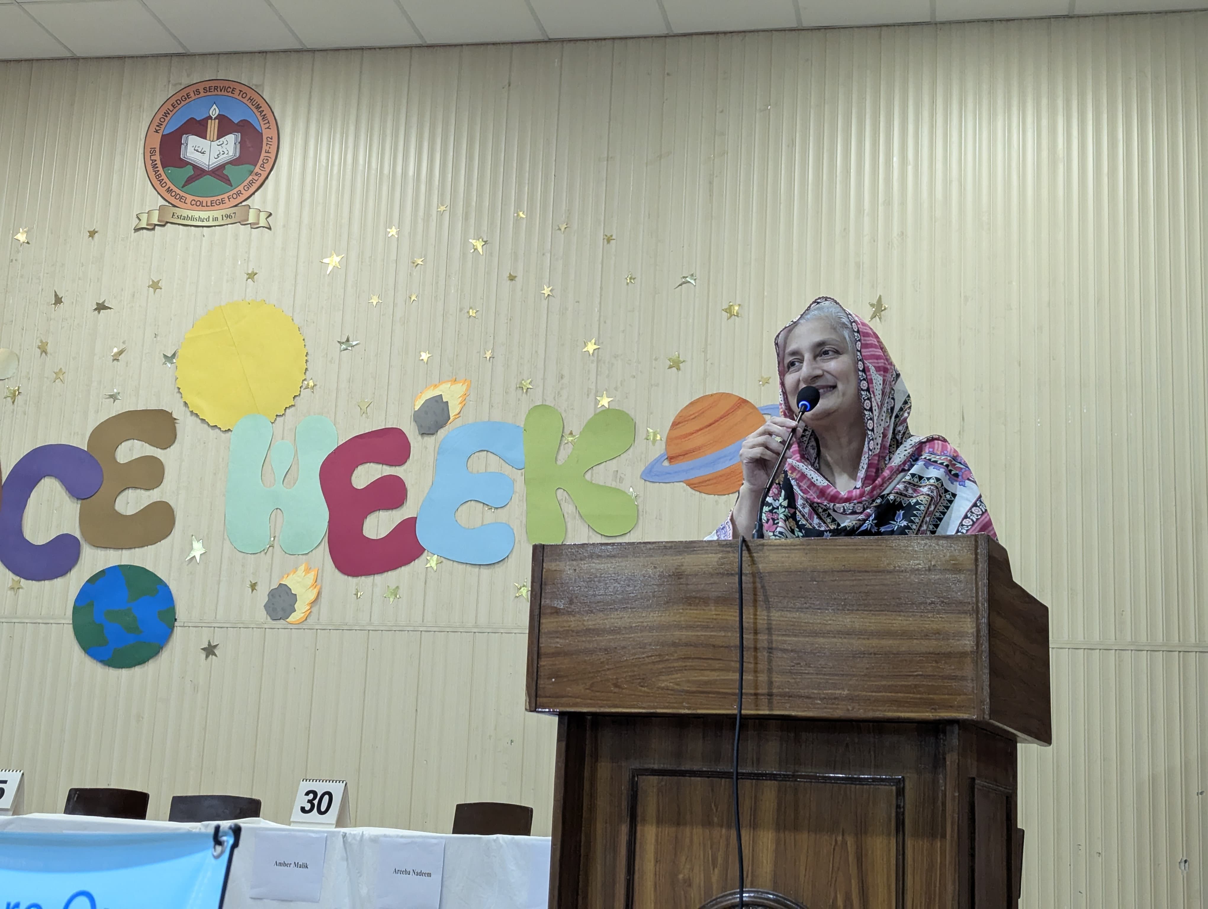 The respected Principal, at the start of her speech, appreciated the efforts of the Department of Physics in organising a wonderful and informative program. She commented, in detail, upon the perfect scheme of Nature, created by the Allah Almighty to facilitate our time on earth. Dr. Fauzia Tanveer Sheikh advised the audience to use their knowledge to fulfill the purpose of their existence as ordained by Allah Almighty.
