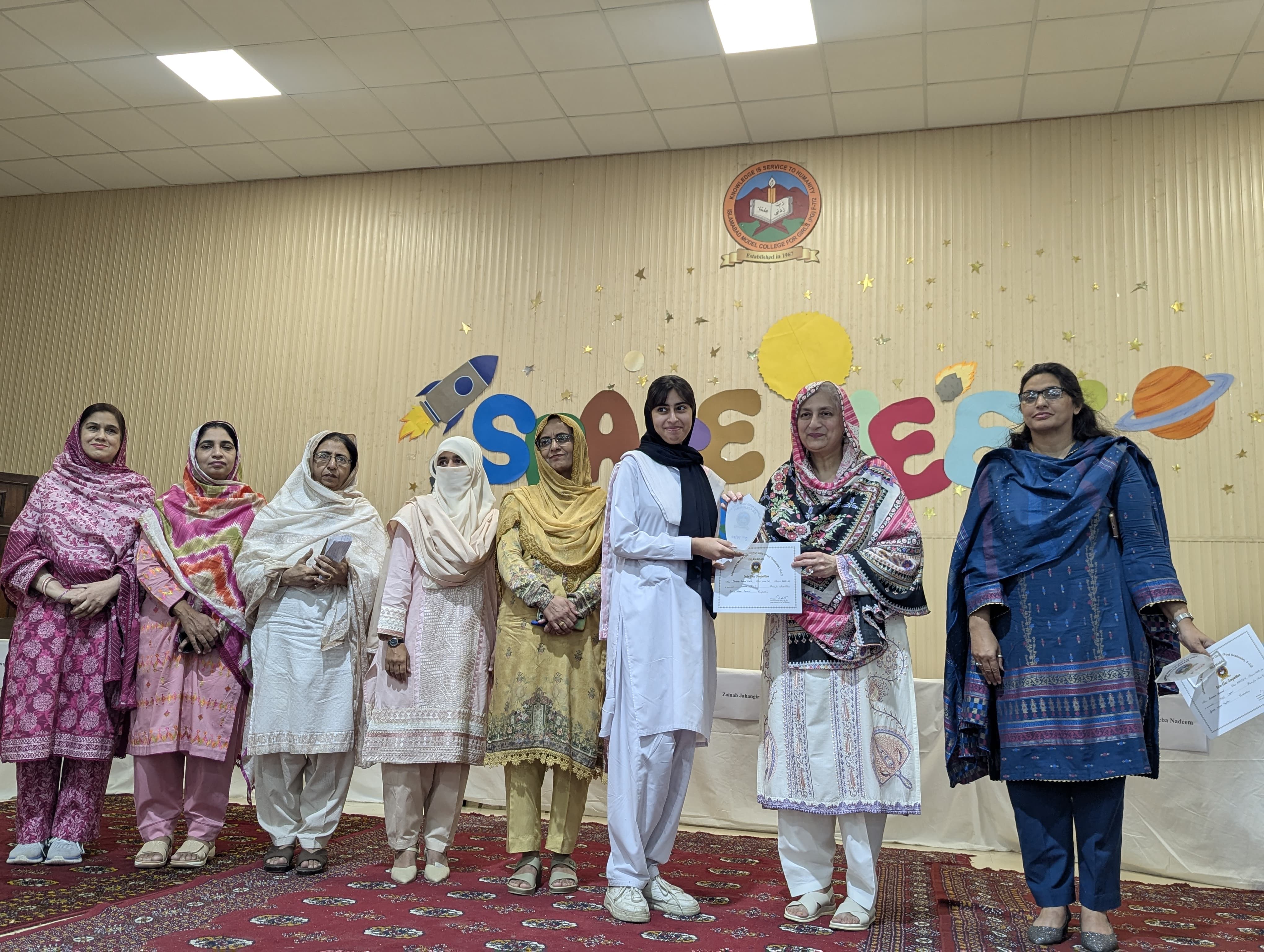 A prize for participation was given to Momina Azmat for making a model of Rehbar I.