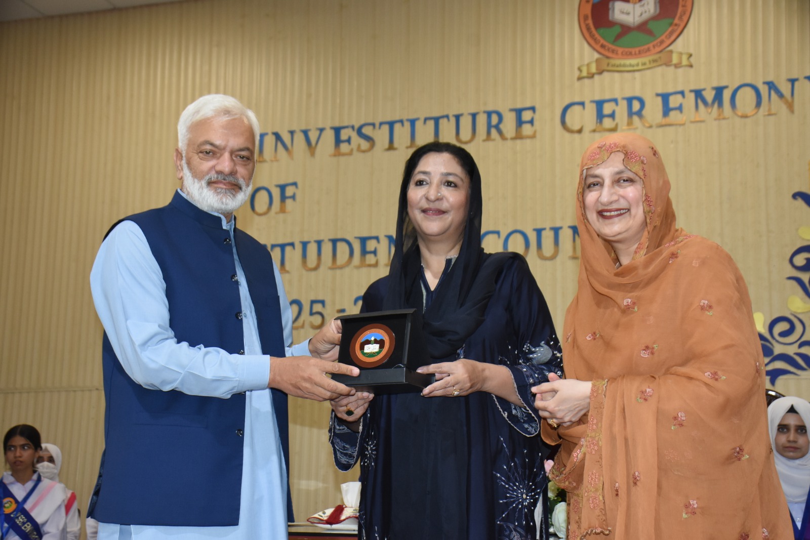 In her address to the audience, the Chief Guest lauded the Student Council for ensuring a smooth and democratic process for electing the Student Council 2025-26. She appreciated the Principal of the college, Dr. Fauzia Tanveer Sheikh, for her dedication and commitment towards her profession. She emphasized upon the character building role of the teachers in the lives of the students. The Chief Guest encouraged the teachers to evolve and equip themselves to maintain pace with the requirements the 21st century. She urged the students to maintain faith in their abilities, asserting that the youth possess the strength and potential to reshape society for the better. Her eloquent and thought-provoking address was received with great appreciation and admiration by the audience.