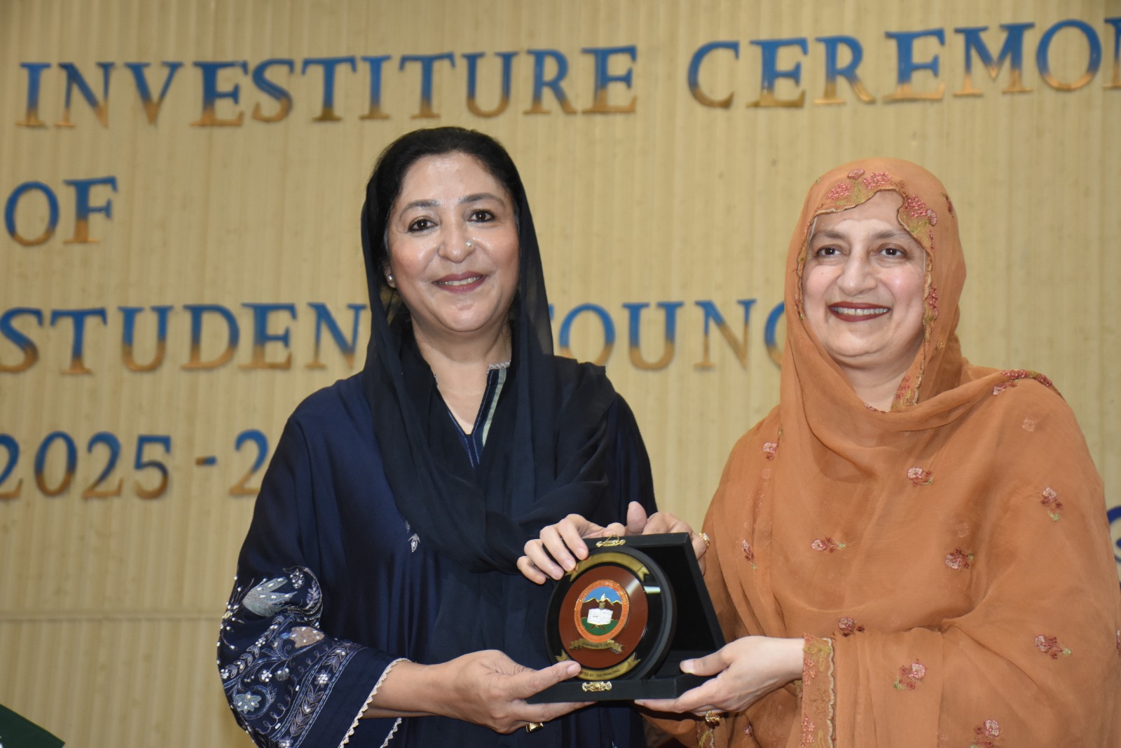 Ms. Wajiha Qamar administered the oath of office to President Ms. Aoon Muskan, Vice President Ms. Areeba Aziz , General Secretary Ms. Amna Azhar, Joint Secretary Ms. Samiya Malik, the Secretaries of various societies, and the Class Representatives. The Chief Guest also distributed badges among the newly appointed office bearers of the Student Council 2025–26.
