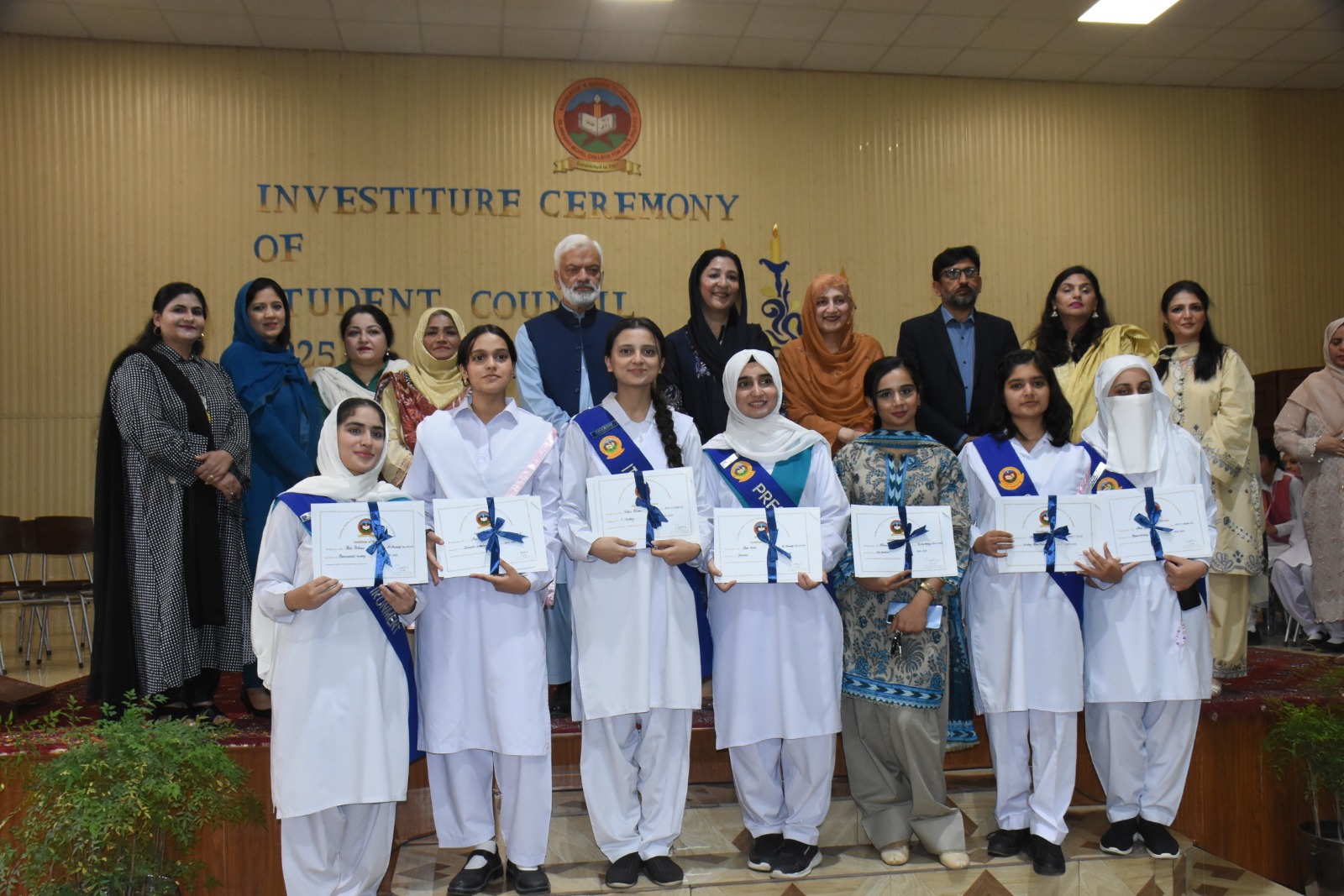 Mr. Shahid Mahmood Abbasi (Director Colleges), Mr. Muhammad Qamar ud din (Director Urban I) and Ms. Fasiha Fayaz Khan (Deputy Director, Quality Control) from the Federal Directorate of Education were also in attendance. Principals from various educational institutions attended the event as well. The parents of the newly elected Executive Council Members were also invited to witness the auspicious occasion.